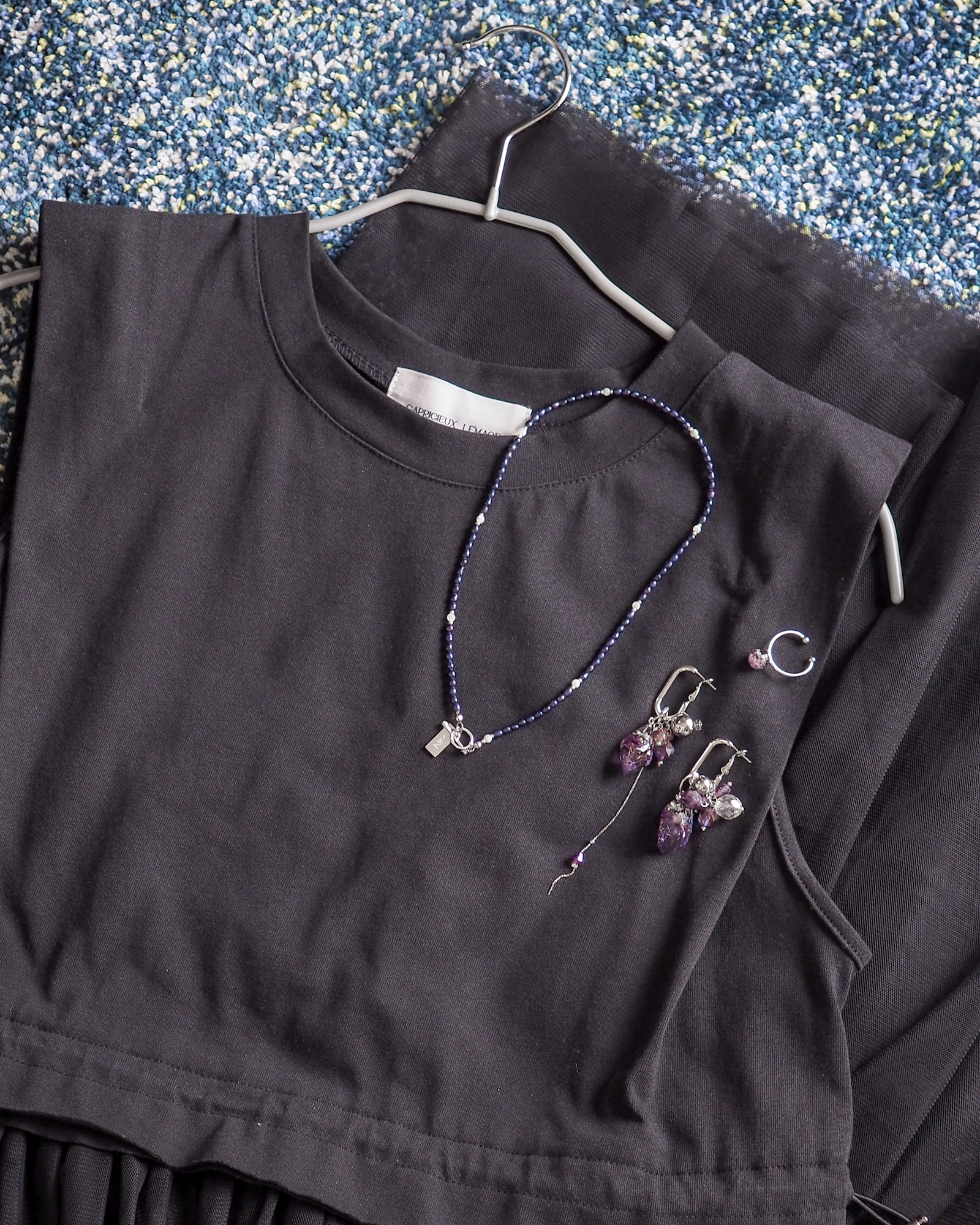 夏のブラックワンピコーデは個人的に、全体が引き締まってオシャレな雰囲気を演出できる気がする。ブラック×Goldも可愛いけど、今回はSilverにすることで都会的な印象に。ブラックコーデなので何色を合わせても可愛いけど、こだわりパープルを合わせることで小洒落た印象に。簡単にオシャレさんになった感が出るので、自分がオシャレさんだと思い込みたいときにやりがち(笑)