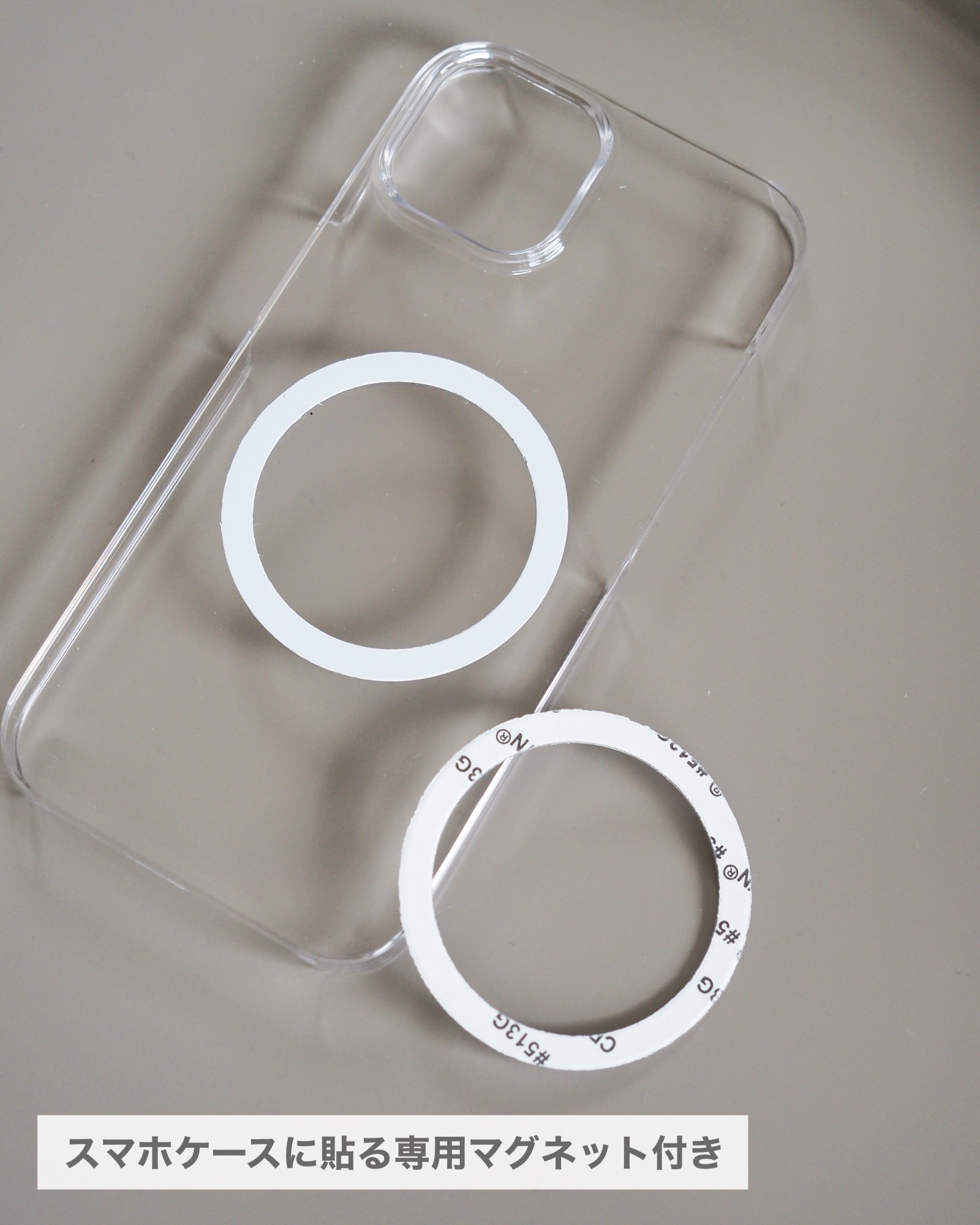 ・スマホケースに貼る専用マグネットシール付き(※シールは貼り直し不可。詳細は画像参照)