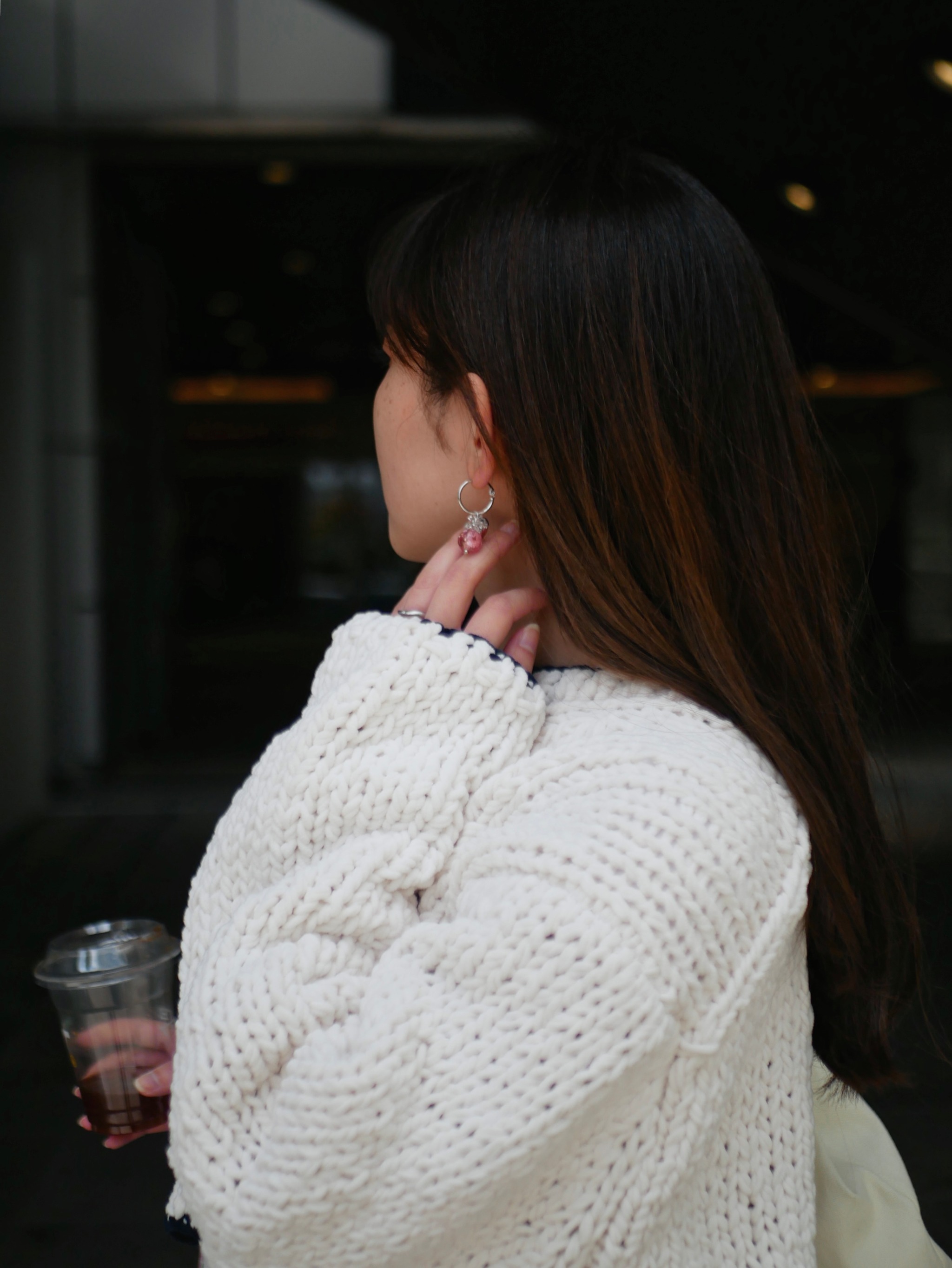 ざっくりしたカーデが華奢なチェーンがを引き立ててくれる✨