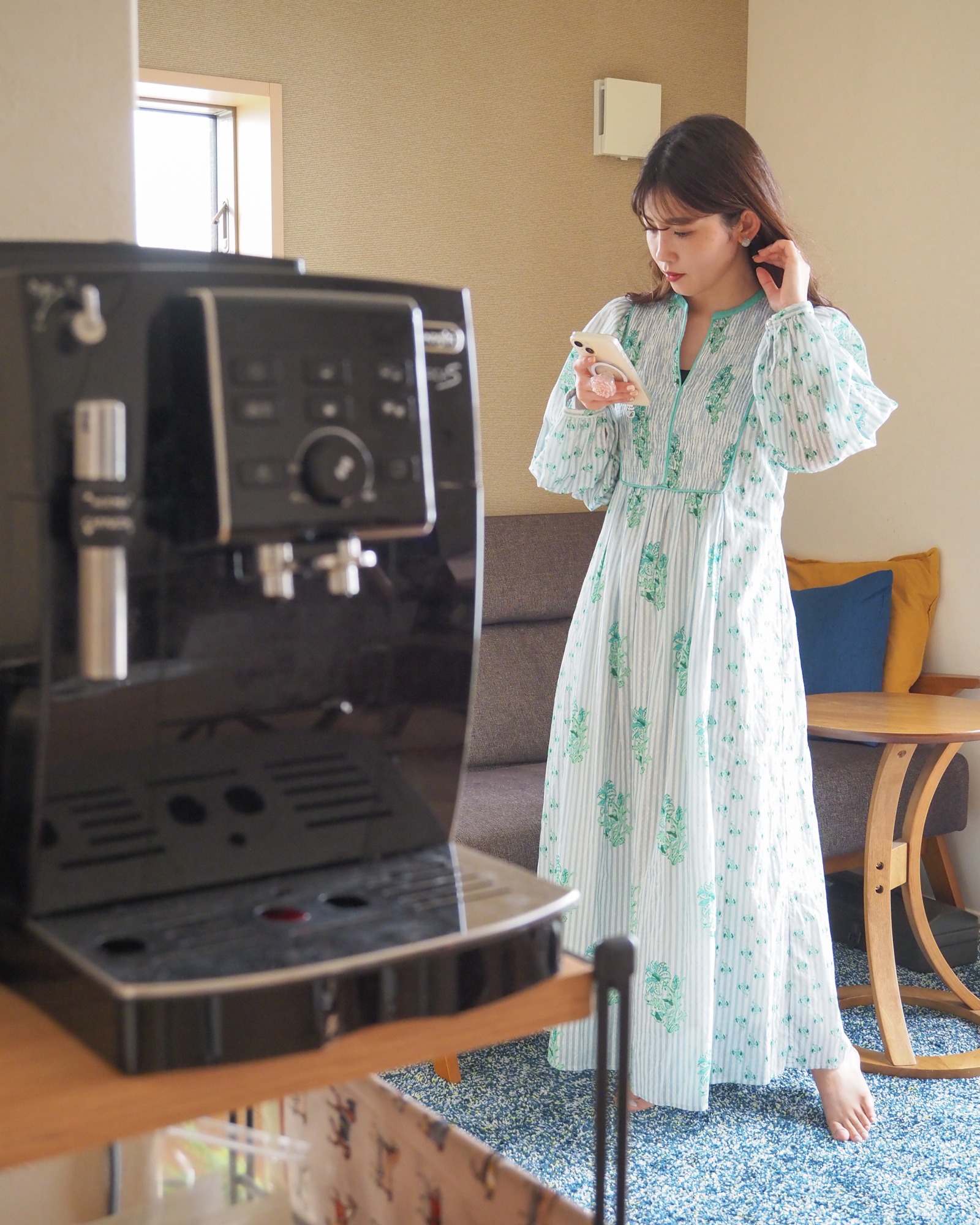 クールな印象に仕上げたくて耳元もトーンを抑えたコーデ。ロングタイプのピアスもいいけど、揺れないタイプでワンピースを主役に。でもしっかりと存在感があるMINI Kyoka.は全体の雰囲気を寂しくさせないのが嬉しいところ。