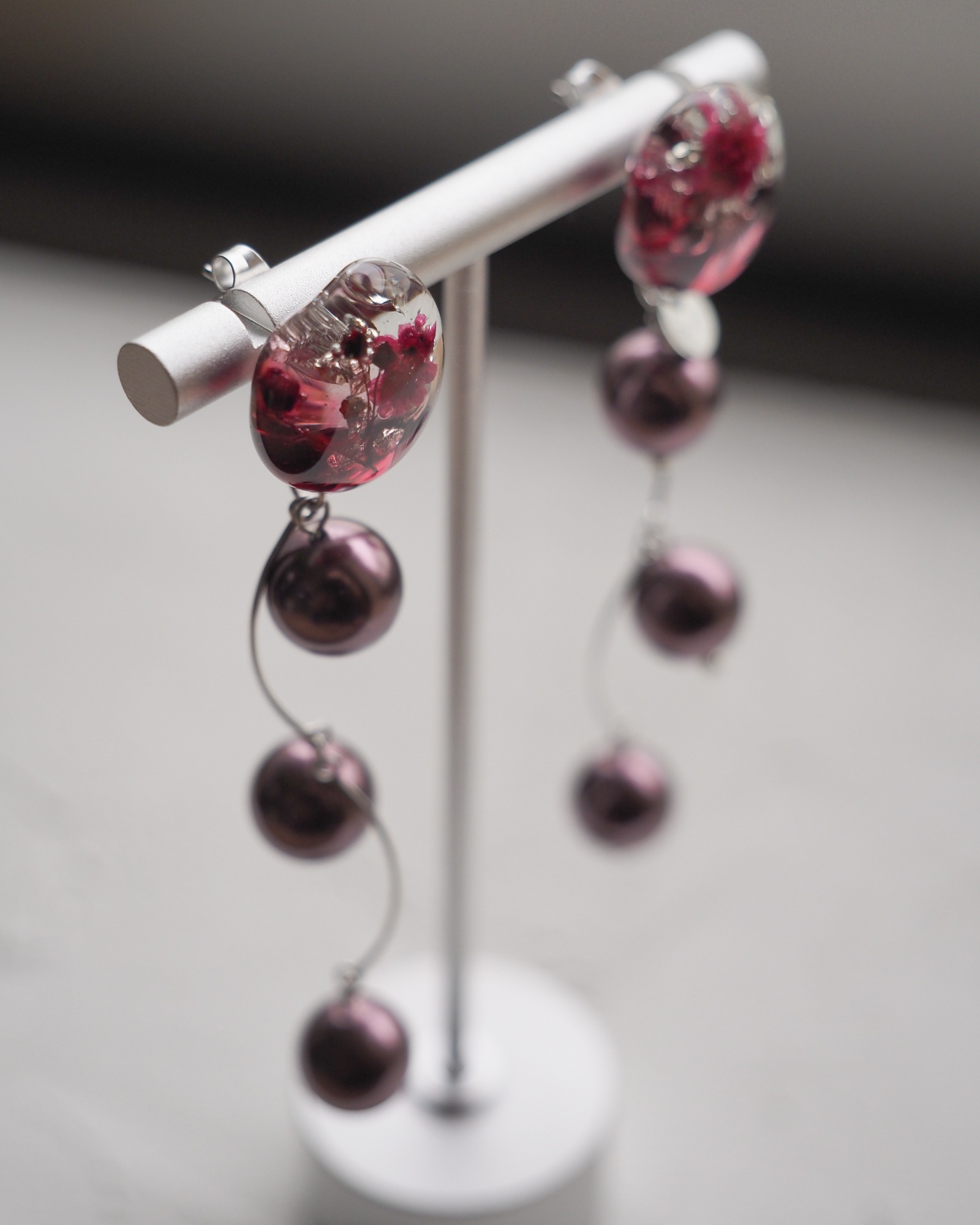 今回はAmane.とSuzunari.の2作品をご用意しました。同じ色でも、かたちが変わることで生まれる印象はまったく別のもの。耳元や首元で、その日の装いにそっと余韻を残してくれます🍇