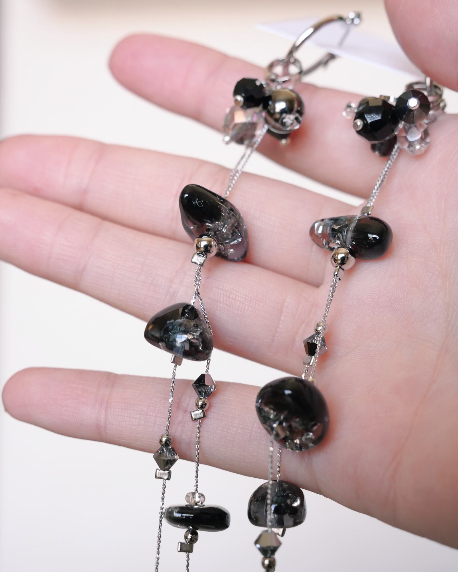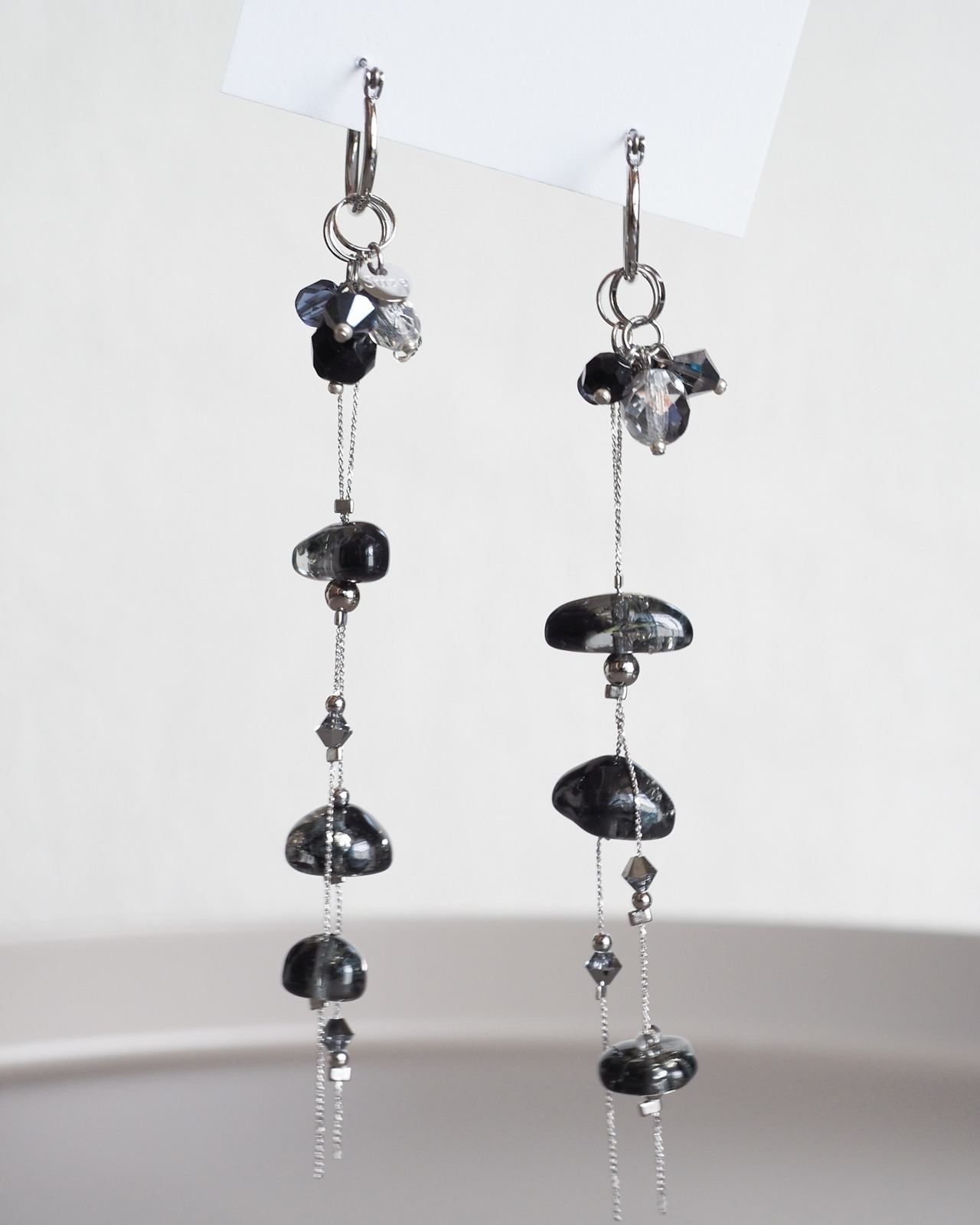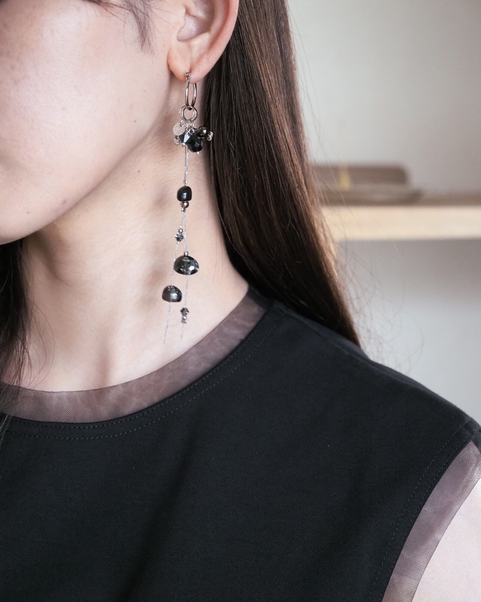 水面に揺れる月の光を映したような、やわらかく揺れるビーズの輝き。繊細なチェーンにそっと添えた光の粒は、歩くたびにふわりと揺れて、何気ない日常の一瞬にも、静かな特別感を運んでくれます。少し背筋を伸ばしたい日、いつもより丁寧に過ごしたいひとときに。