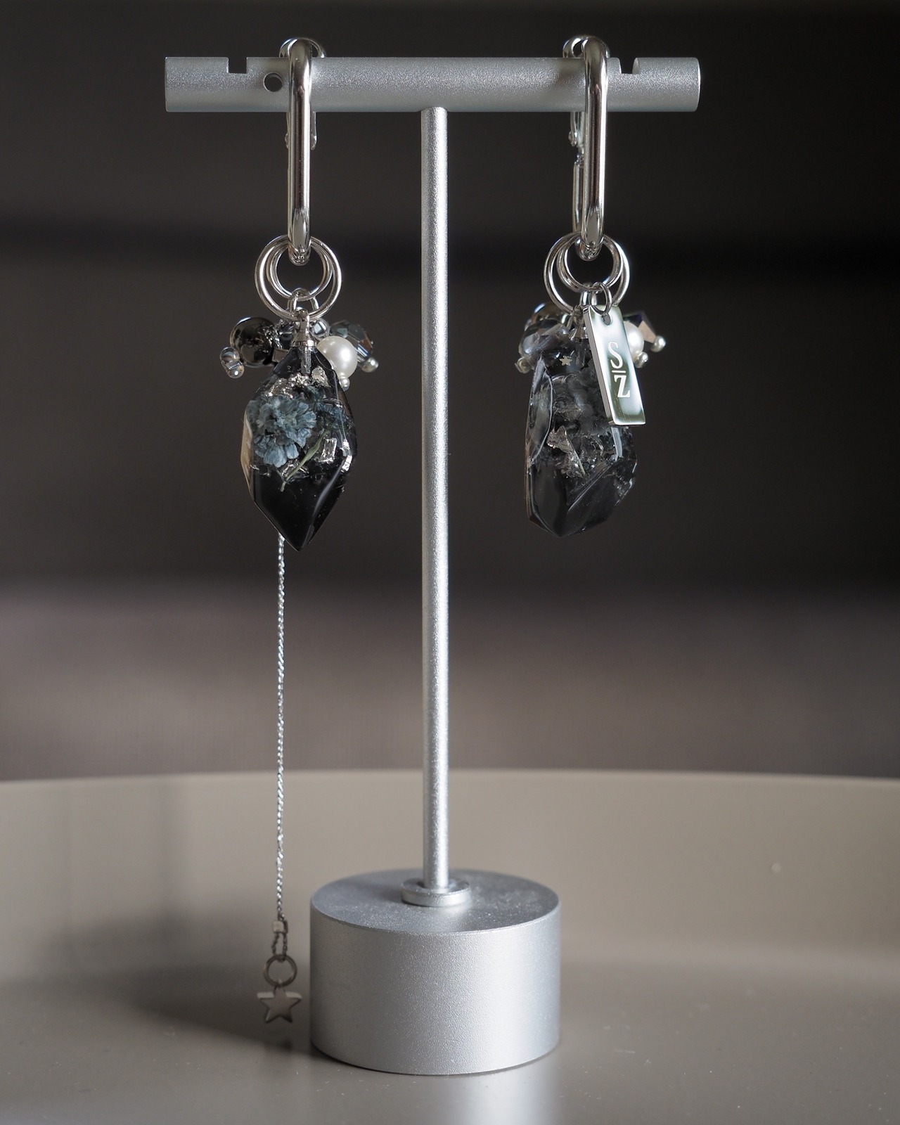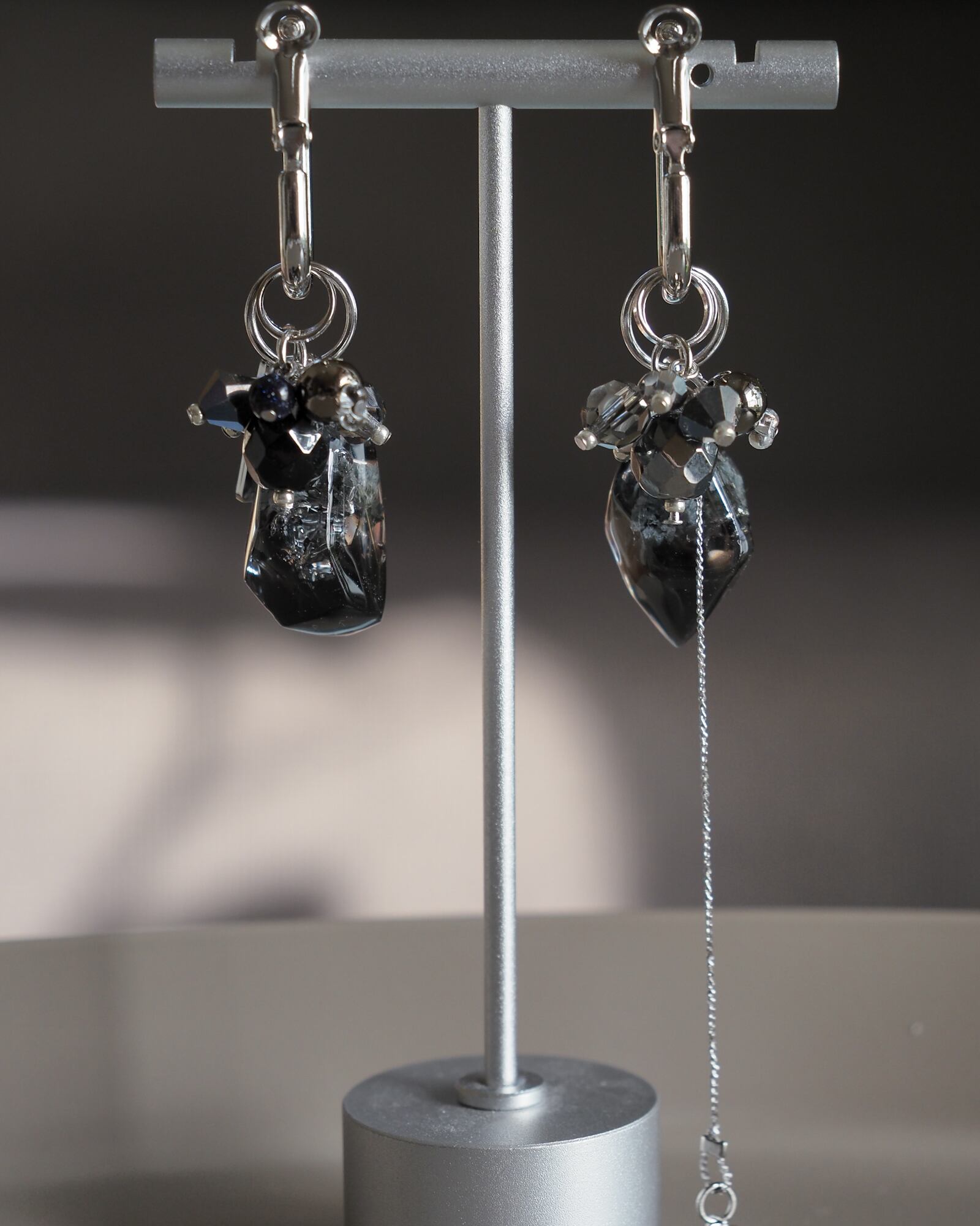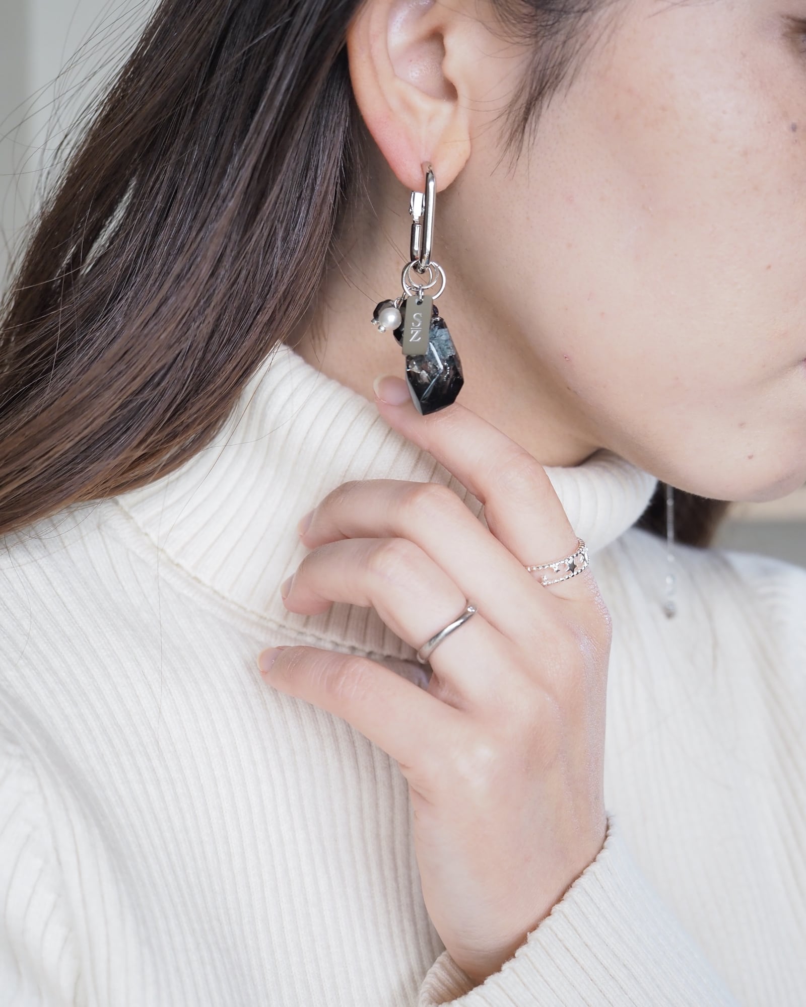 パーツの着け外しで印象が変わる、1つで2つの表情を持つアクセサリーです。週末の装いに、遊び心を加えて耳元を彩る。しっかりとした存在感を放ってくれます。