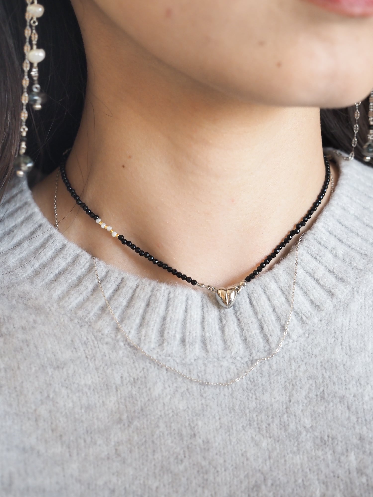 2wayで楽しむことができ、レジンパーツ部分を前にしても、ハートを前にしてもご着用いただけます。