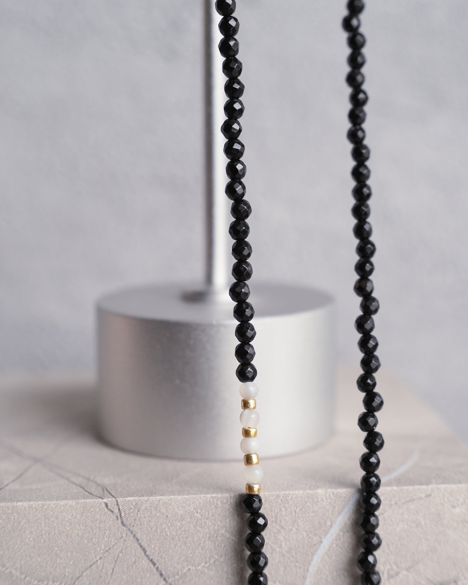 多面カットされたオニキスは、角度が変わる度に、静かにきらめきます。クールなアクセントをプラスしたい方にぴったり。