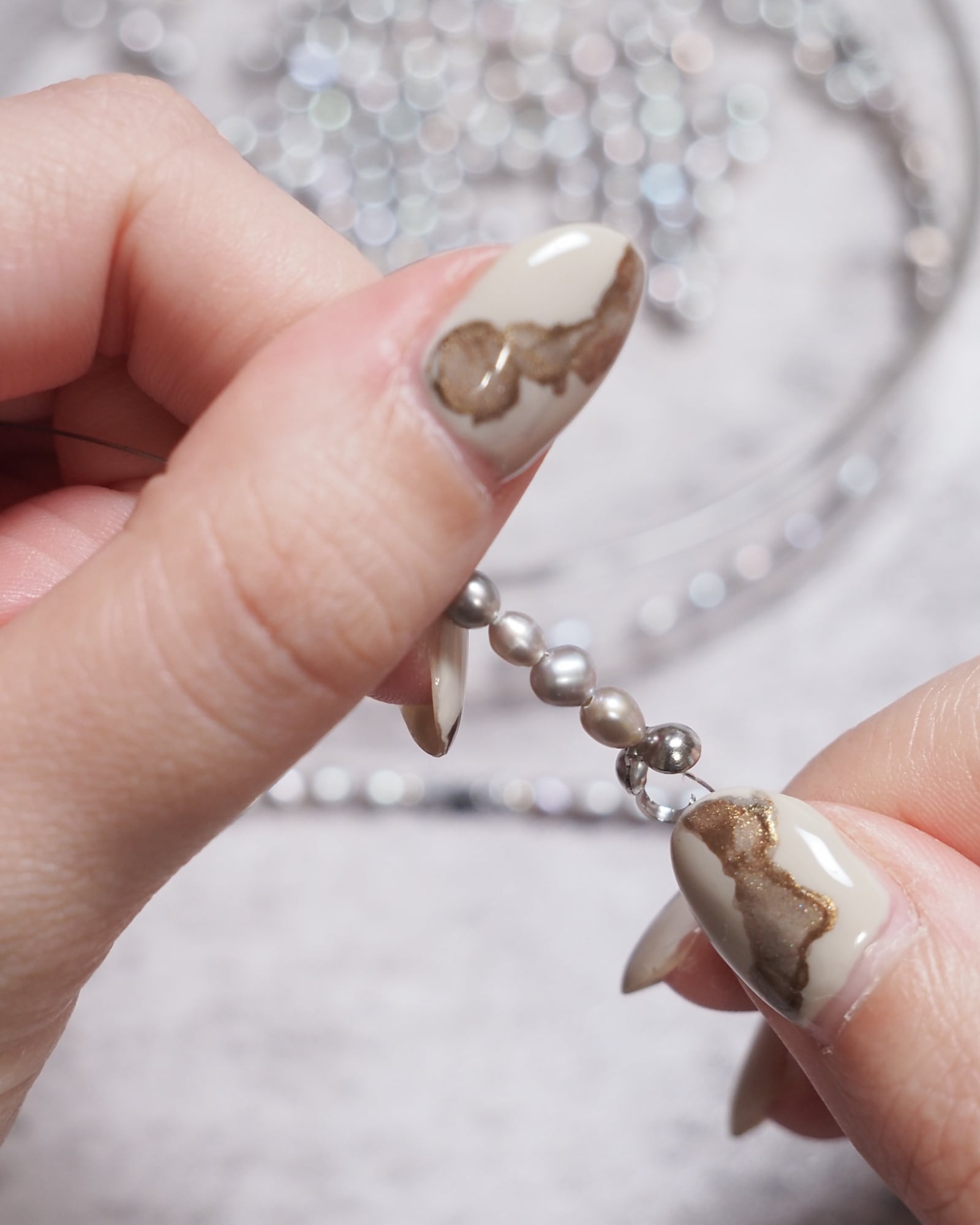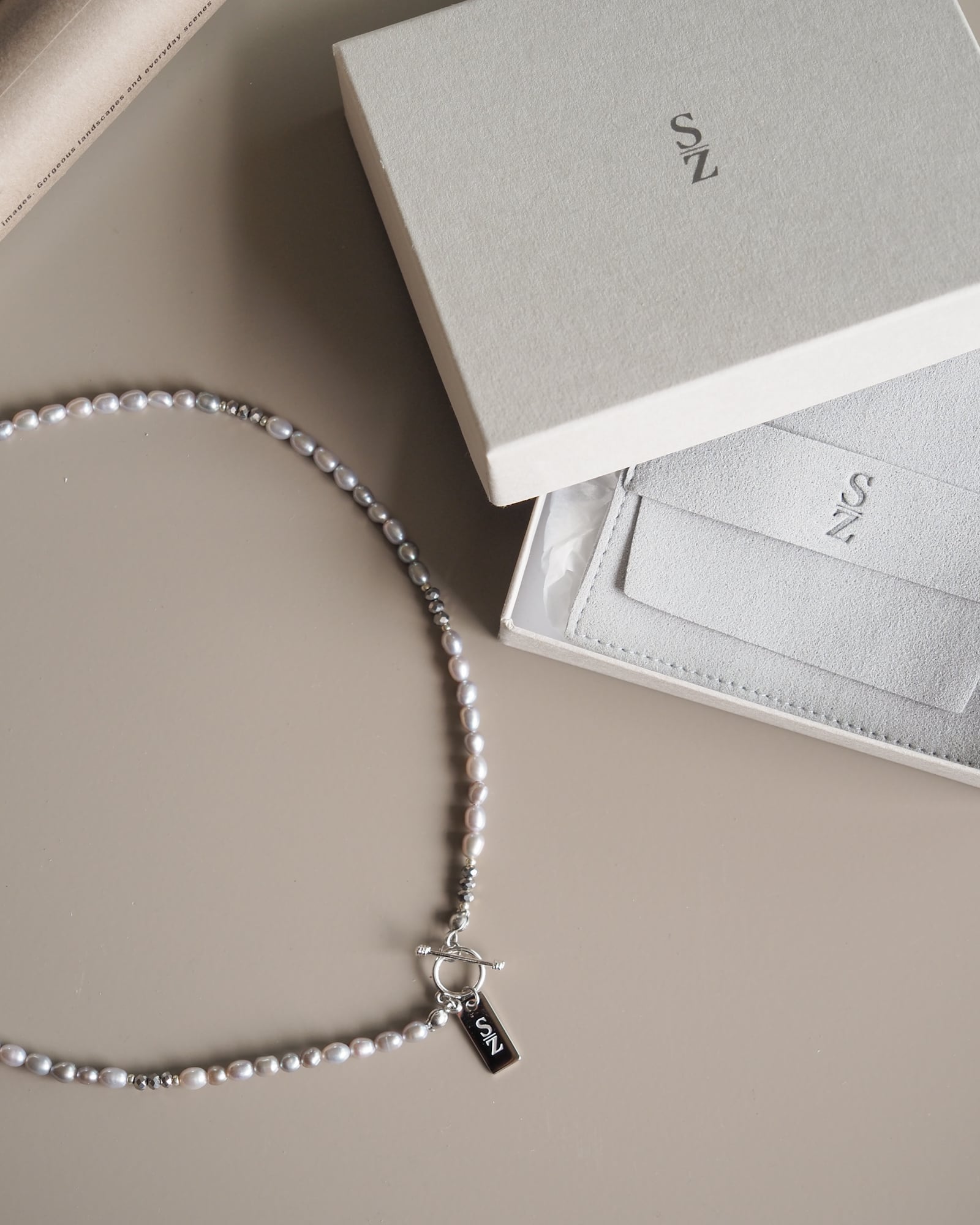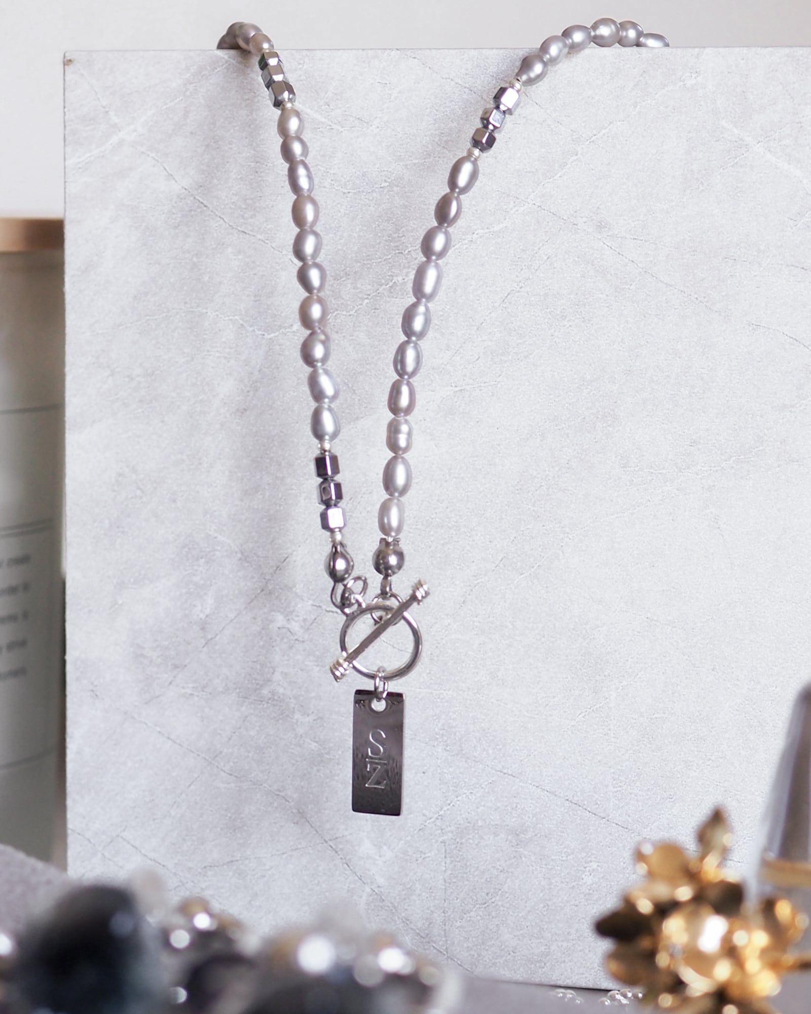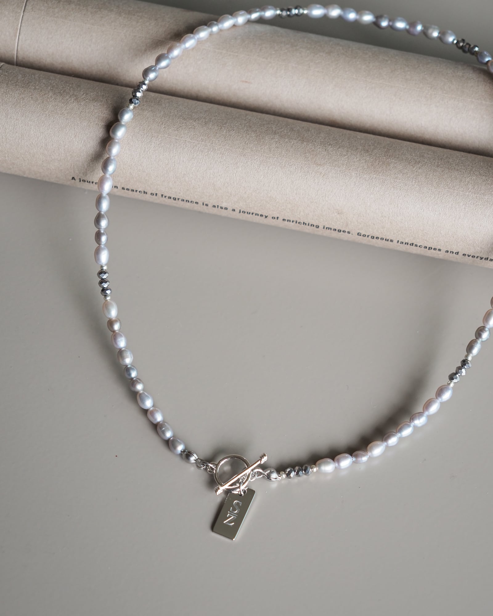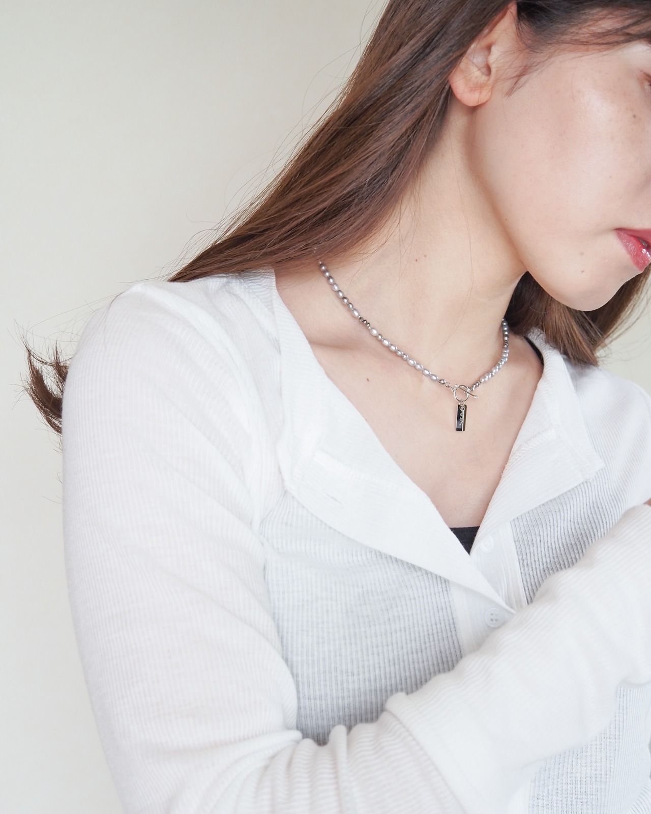 ひかえめに光る淡水パールが、首もとにやさしいきらめきを添えてくれます。